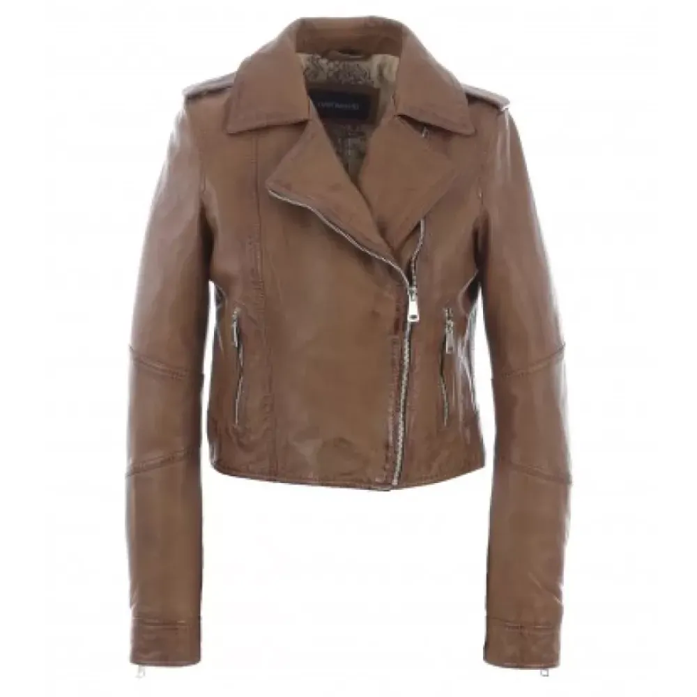 Timeless And Refined – These Are The Words To Define This Beautiful Genuine Sheep Leather Jacket With An Authentic Look To Die For! Fitted Shape, Asymmetrical Zipper, Zipped Side Pockets, Zipped Cuffs, Buttoned Plackets At The Shoulders, Stitchings At The Elbows, Inside Pockets, Cotton Lining.