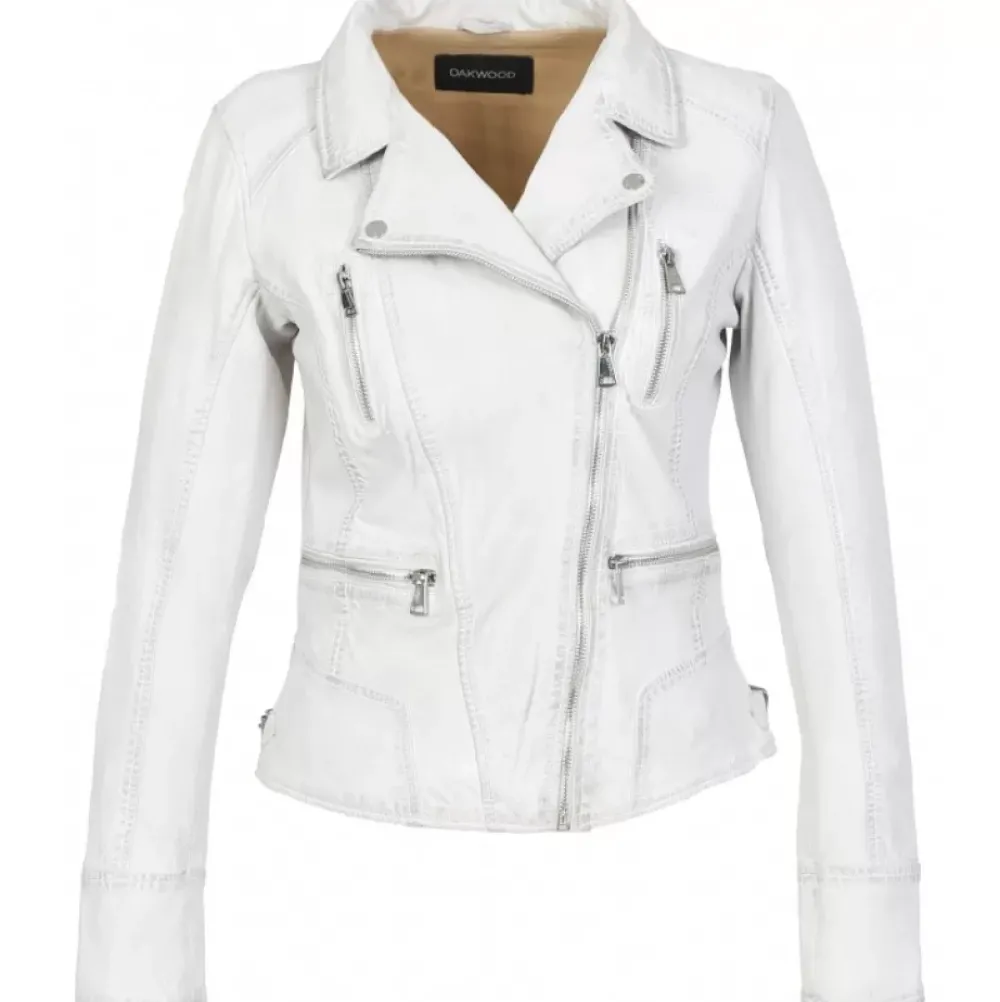 Biker Jackets*OAKWOOD Camera White – Genuine Leather Jacket With Washed Effect