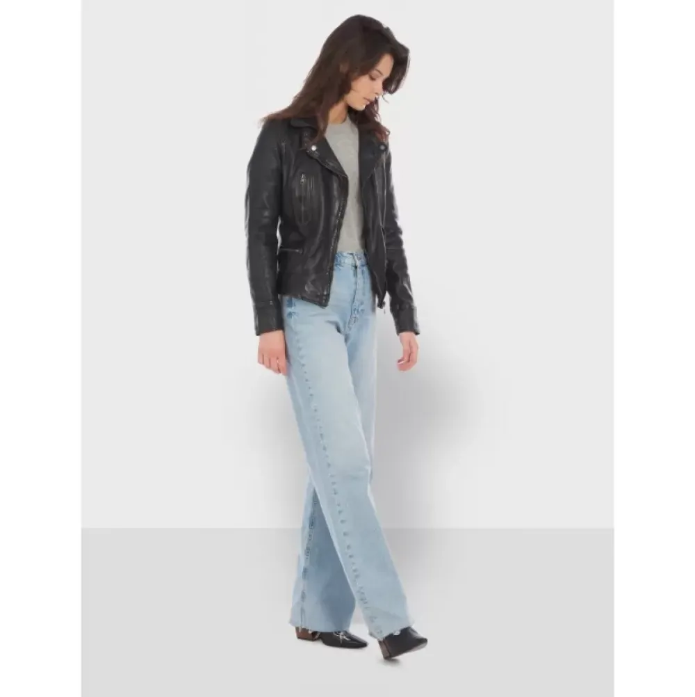 This Genuine Sheep Leather Jacket With Washed Effect Has An Extraordinary Power: To Sublimate You In The Blink Of An Eye And To Offer You A Style That Will Take Your Breath Away! Slim Fit, Asymmetrical Zipper, Fastening Belt At The Collar, Decorative Press Buttons, Chest Zipped Pocket, Horizontal Zipped Pockets, Thightening Plackets On The Sides, Inside Zipped Pockets, Blended Cotton Lining.