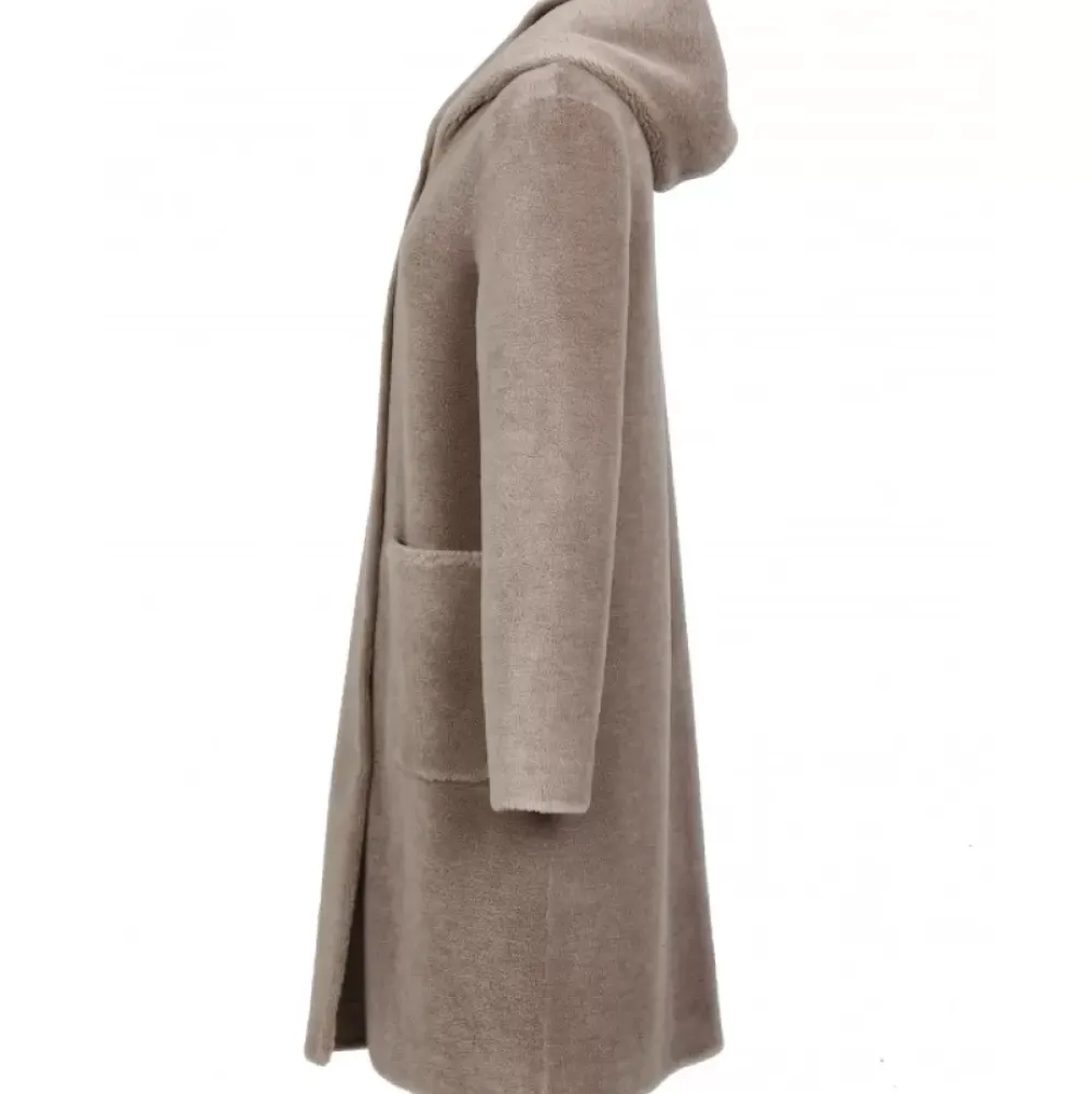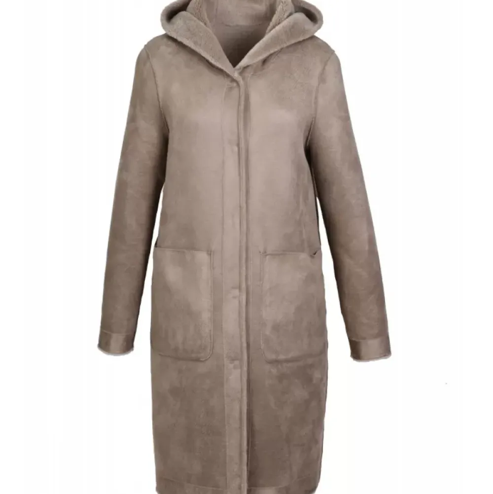 Coats*OAKWOOD Angelique Taupe – Faux Shearling Reversible Hooded Coat