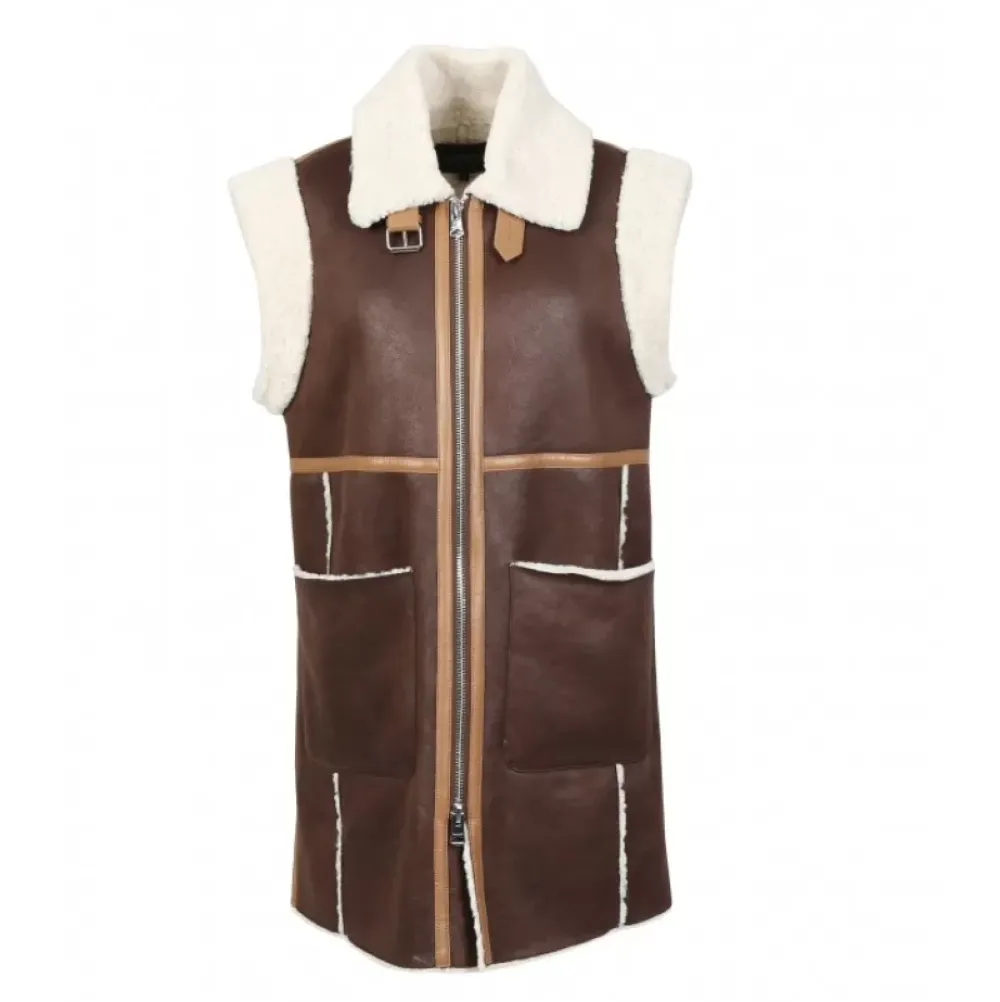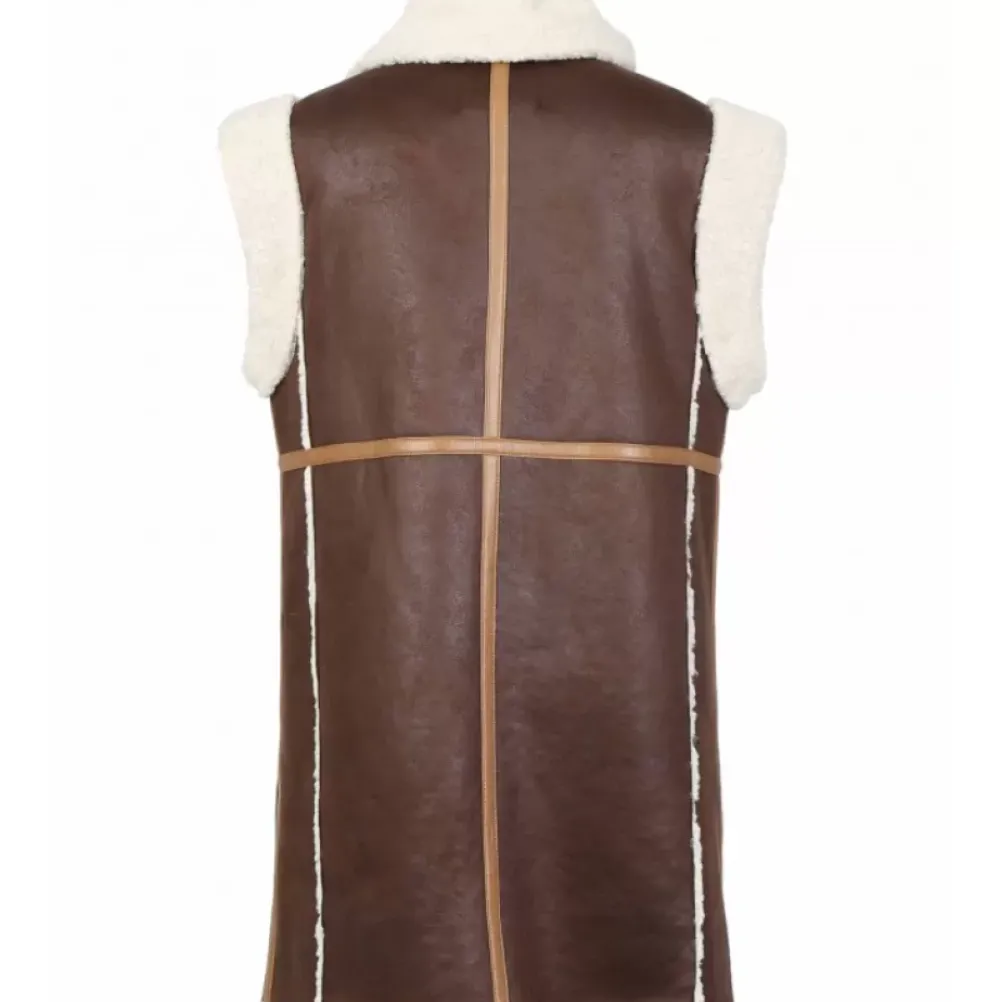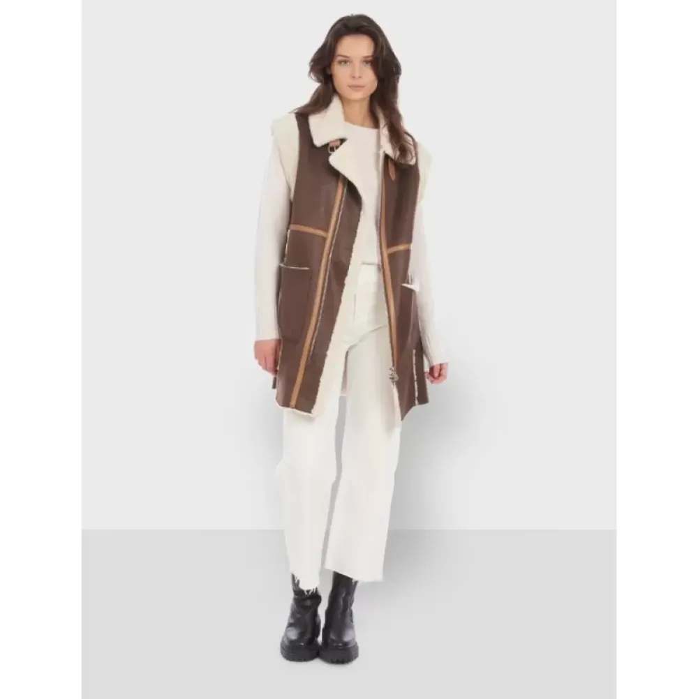 The Look Is Bohemian And Has A Delicious Little Retro Accent! Everything We Love And That We Find With This Faux Shearling Sleeveless Coat! Comfort Fit, Central Closing With Two-Way Zipper, Shirt Collar, Fastening Belt At The Collar, Patch Pockets, Fake Fur (Inside, Collar And Shoulders).