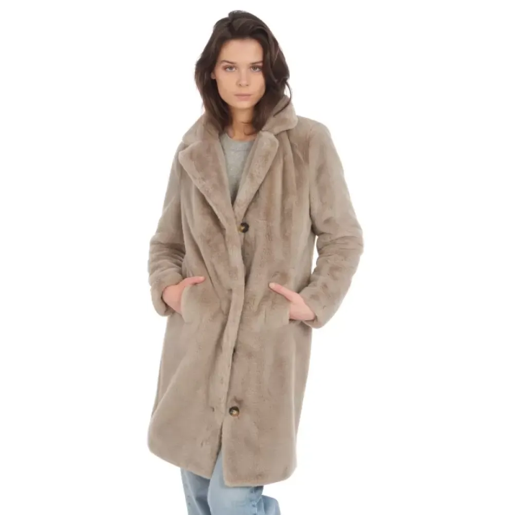 A Long Fake Fur Coat Is Both Stylish And Comforting At The Same Time, Especially When The Fake Fur Is Ultra-Soft And Addictive! Comfort Fit, Lapel Collar, Central Closing With Buttons, Slanted Pockets, Inside Zipped Pockets, Lining.