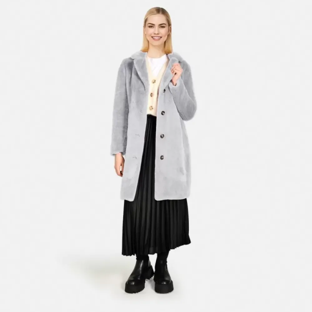 A Long Fake Fur Coat Is Both Stylish And Comforting At The Same Time, Especially When The Fake Fur Is Ultra-Soft And Addictive! Comfort Fit, Lapel Collar, Central Closing With Buttons, Slanted Pockets, Inside Zipped Pockets, Lining.