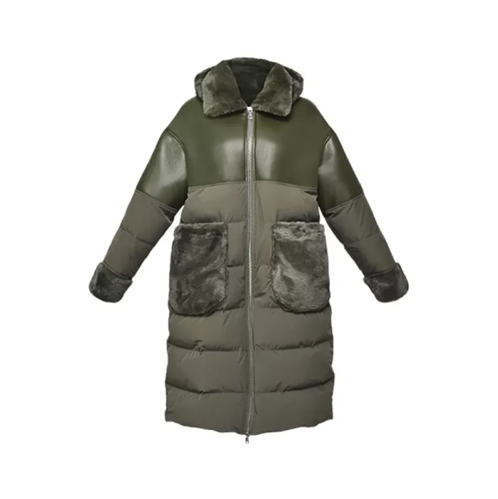 Coats*OAKWOOD Ella Kaki – Fake Fur / Nylon Long Coat