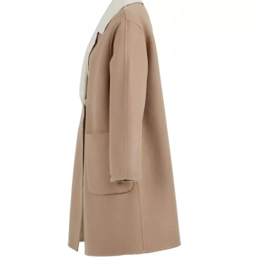 A Timeless And Refined Style Is The Secret Of An Ideal Companion For All Fall Looks! This Short Wool Coat Has More Than One Card In Its Sleeve: Its Straight And Oversized Shape Provides Fluidity And All The Comfort You Need. With Its Lapel Collar And Double Breast Buttons, It Brings An Elegant Touch To Your More Casual Outfits Or Accentuates The Sophistication Of More Glamorous Looks. Its Patch Pockets Allow You To Slip Your Hands Inside For Warmth – Or Style. This Is What Makes It The Ideal Companion: Reversible, It Allows You To Associate It With Whatever In Your Wardrobe! You Would Be Wrong Not To Get It!