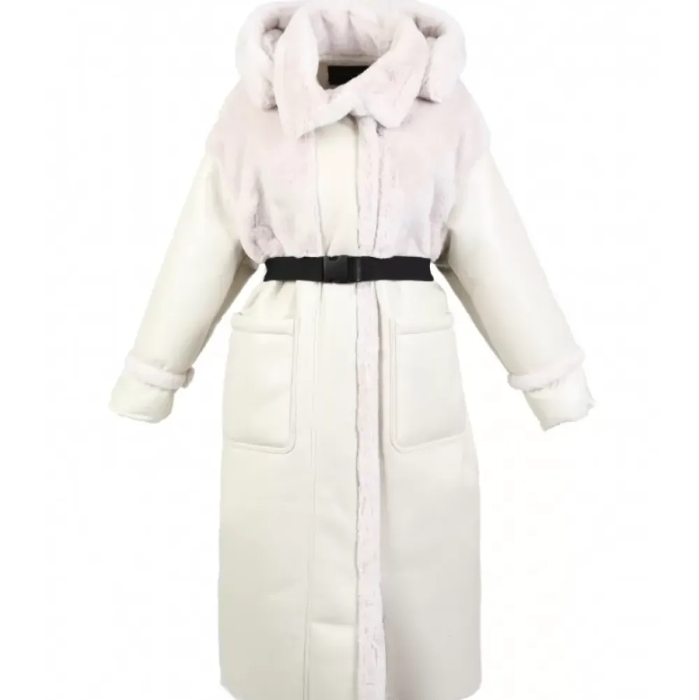 The Look Is Cool And Original, A Real Call For Cocooning This Winter By Wrapping Yourself In This Long Tri-Material Coat (Fake Fur / Faux Leather / Padded Nylon), Comfort Fit, Central Closing With Zipper, Shirt Collar, Removable Hood, Removable Belt With Clip Buckle, Patch Pockets, Without Lining.
