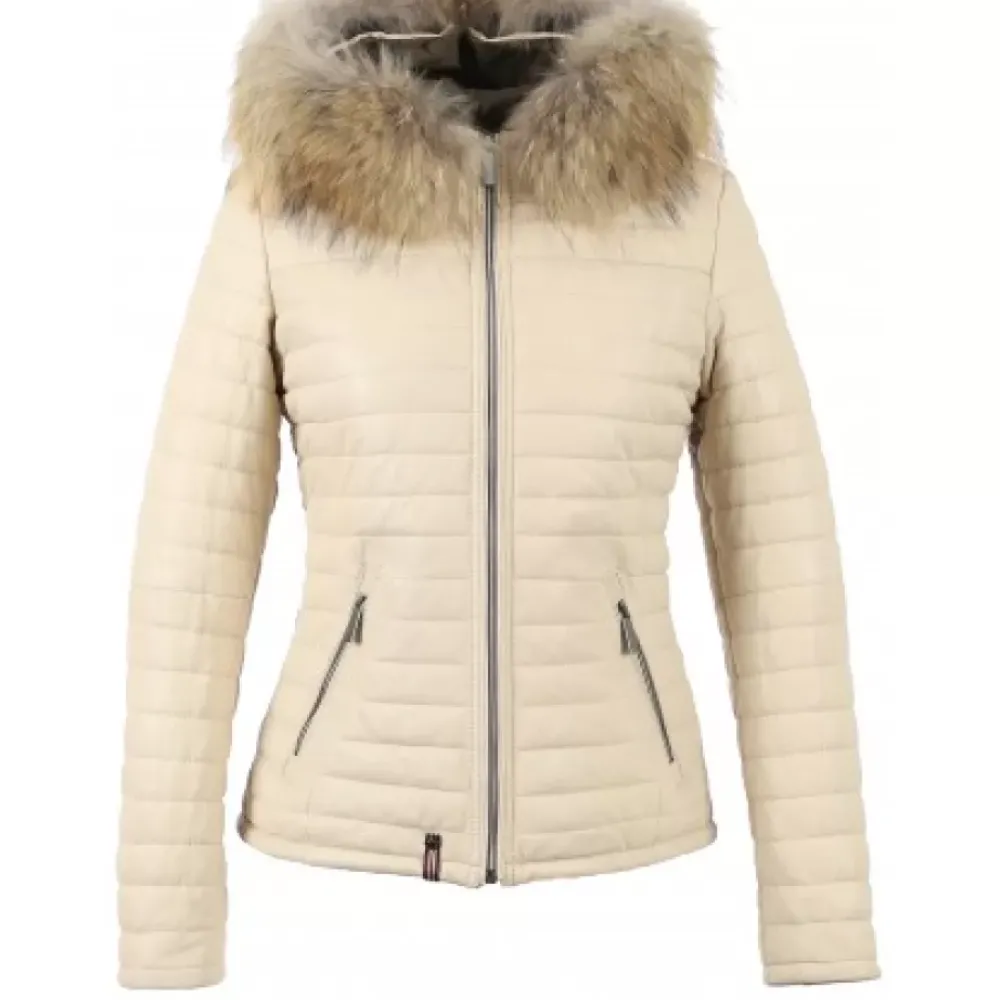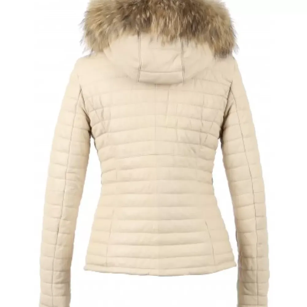 Downjackets*OAKWOOD Happy Eggshell- Real Fur Hooded Genuine Leather Jacket