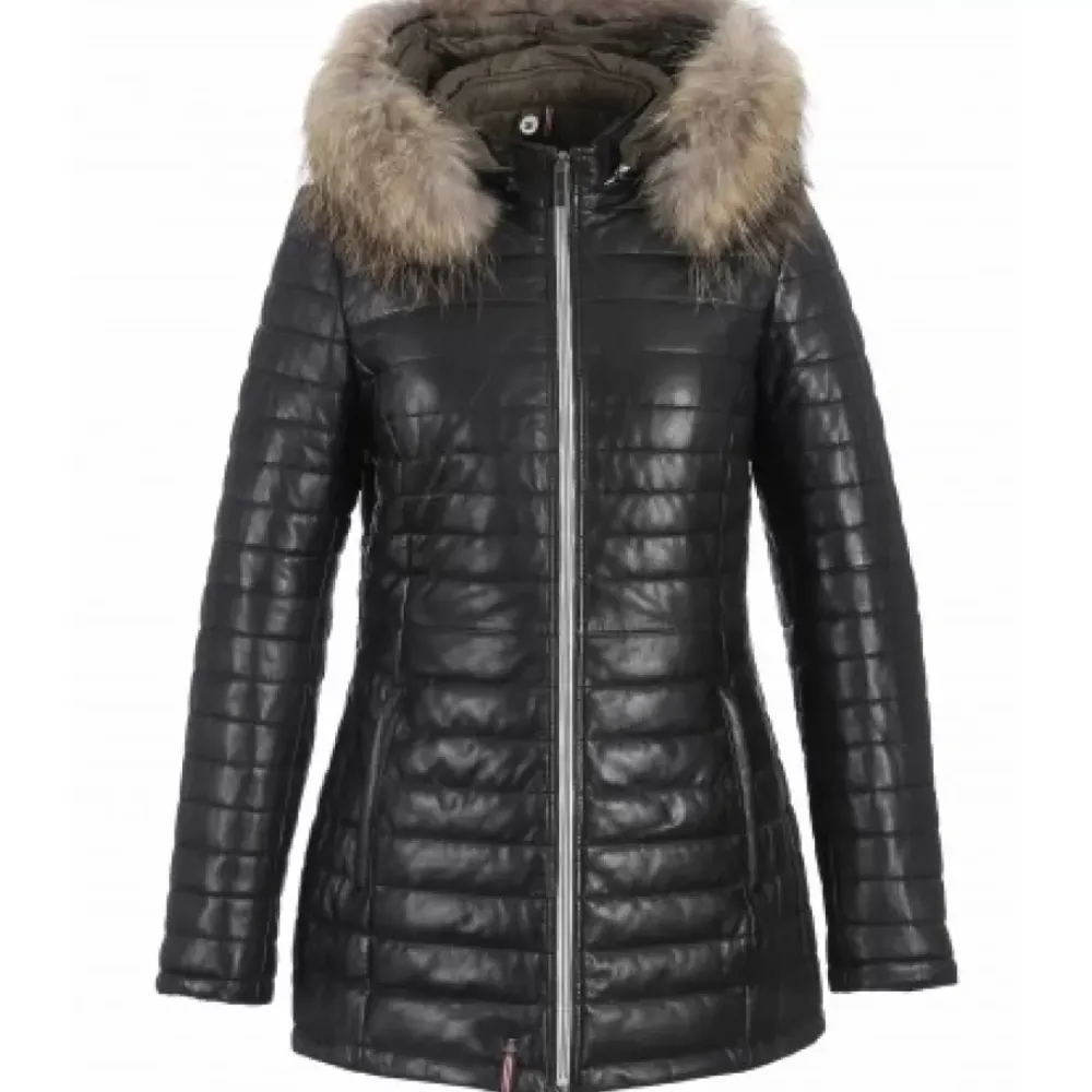 Were You Looking For The Perfect Long Leather Down Jacket ? This Is The One . This Timeless Down Jacket In Sheep Leather Will Add A Touch Of Elegance And Sophistication To Your Look While Keeping You Warm Thanks To The Thinsulate Heat-Regulating Technology. You Can Choose Different Styles Thanks To Its Hood And Real Fur, Both Removable! Showcasing Two Front Skew Pockets, Inside Pockets And A Fine Nylon Lining, This Down Jacket Should Be In Your Winter Wardrobe Because It’S Perfect To Wear With Any Outfit. We Love Its Straight Cut Which Will Enhance Your Body Shape.