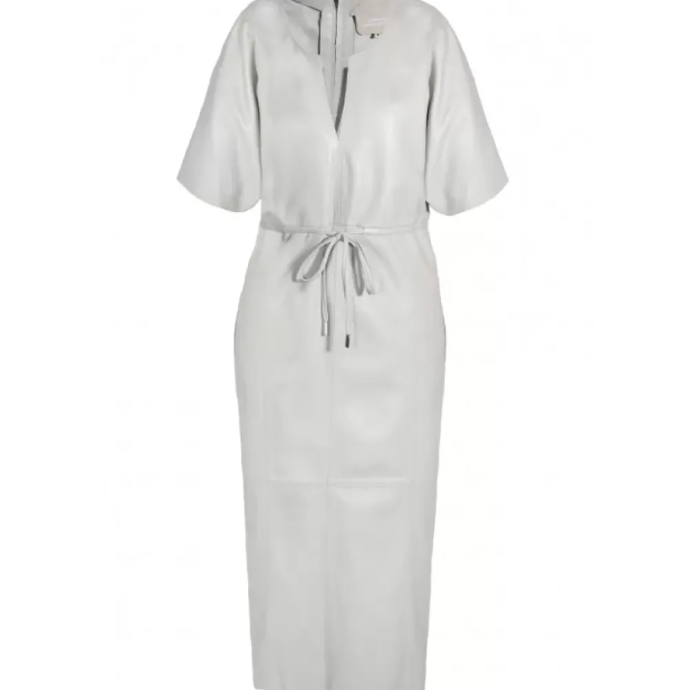 Fluid Material, Waisted – You Figured It Out, This Midi Dress Is A Must-Have! Genuine Sheep Leather, Slim Fit, Round Neck With V-Slit, Short Batwing Sleeves, Drawstring At The Waist, Side Pocket, Back Zipper, Without Lining.