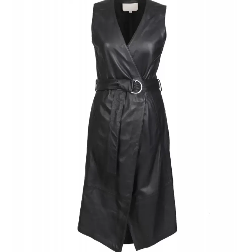 This Wrap Dress In Genuine Sheep Leather Makes A Splash: The Way Its Material Hangs And Its Softness Like A Second Skin Are Addictive And We Never Get Tired Of It! Slim Fit, V Crossed Collar, Closing With Press Buttons, Removable Belt With Buckle, Invisible Pockets, Without Lining.