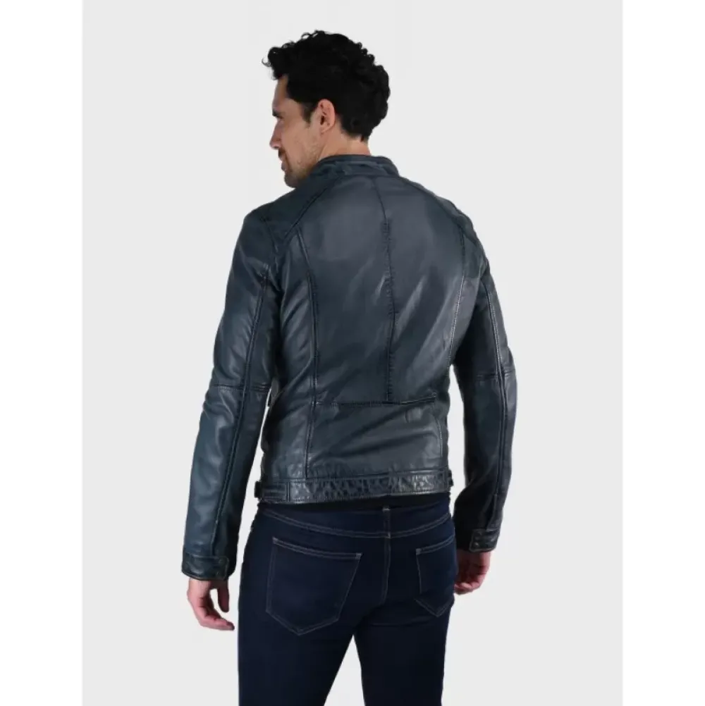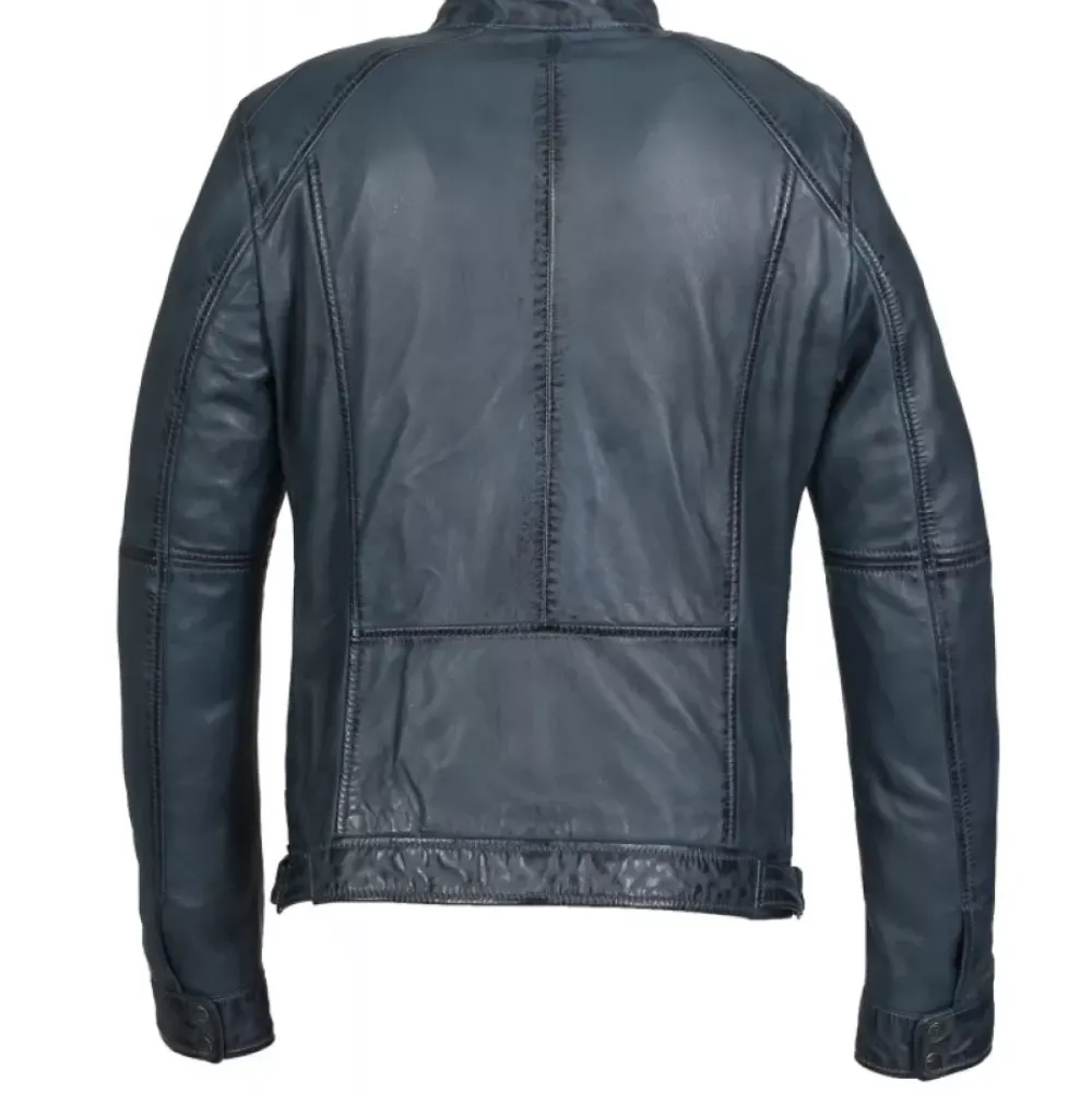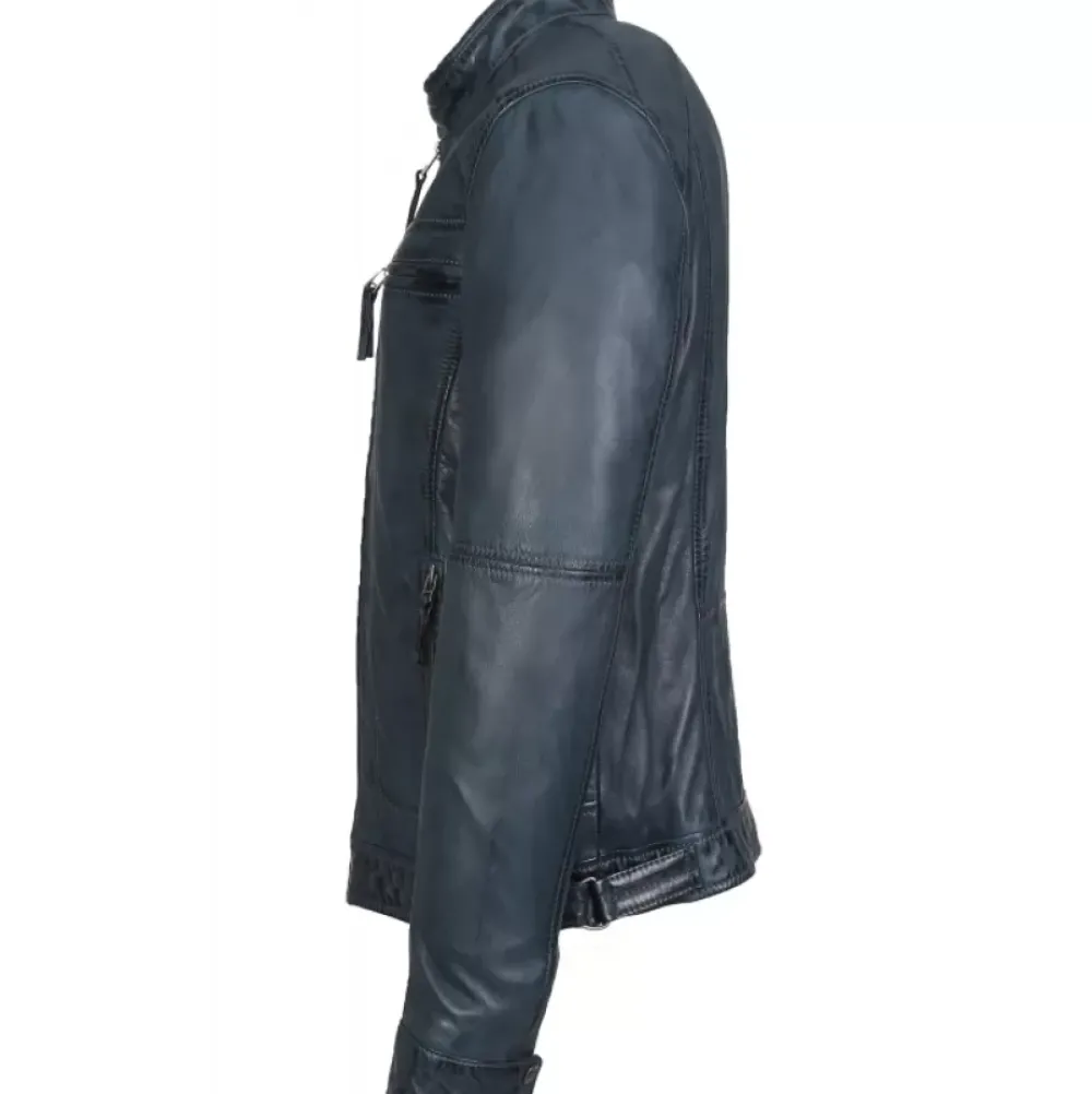 Gentlemen, A Stylish Look Isn’T Just For Women! Take On This Smooth And Soft Sheep Genuine Leather Jacket Which The Straight Shape And Its Overstitched Lines Give Structure To Your Figure. High Round Collar With Press Buttons, Central Closing With Zipper, Zipped Chest Pockets, Side Zipped Pockets, Tightening Plackets On The Sides, Press Studs At The Cuffs, Inside Zipped Pockets, Cotton Lining.