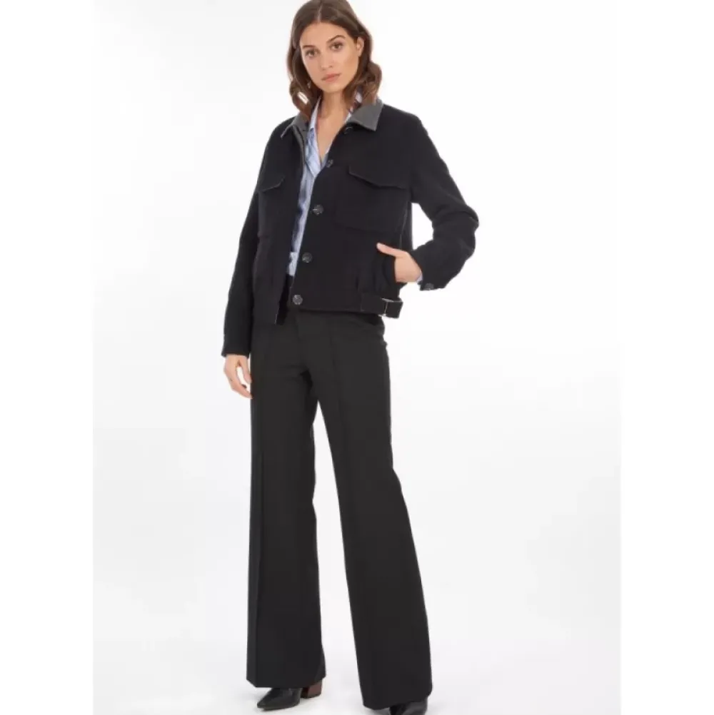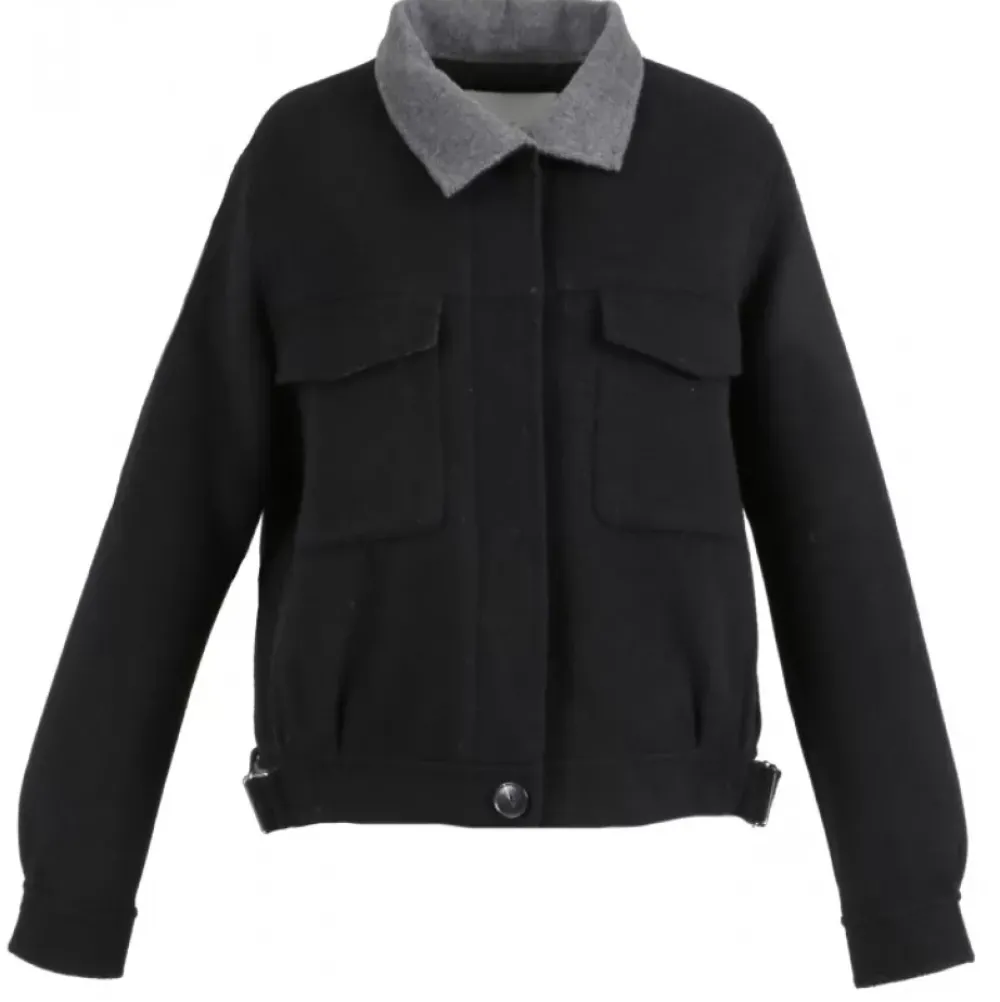 In The Series Of Extraordinary Jackets To Feel Beautiful In, We Literally Fall In Love With This 100% Wool Jacket Inspired By The Timeless Denim Jacket! Its Central Closure With Buttons Elegantly Hidden Under A Placket Goes To A Shirt Collar And Its Two Flap Patch Pockets Coat Its Front. To Give Volume And Interest To This Model, Various Elements Have Been Added Such As Its Belted Effect And Its Tightening Straps On The Sides But Above All, Its Set Of Gathers That You Will Find At The Front And At The Back To Give Volume, As Well As At The Bottom Of The Buttoned Sleeves. Perfect When The Temperatures Start To Drop Thanks To Its Lining, It Will Easily Pair With All Your Outfits!