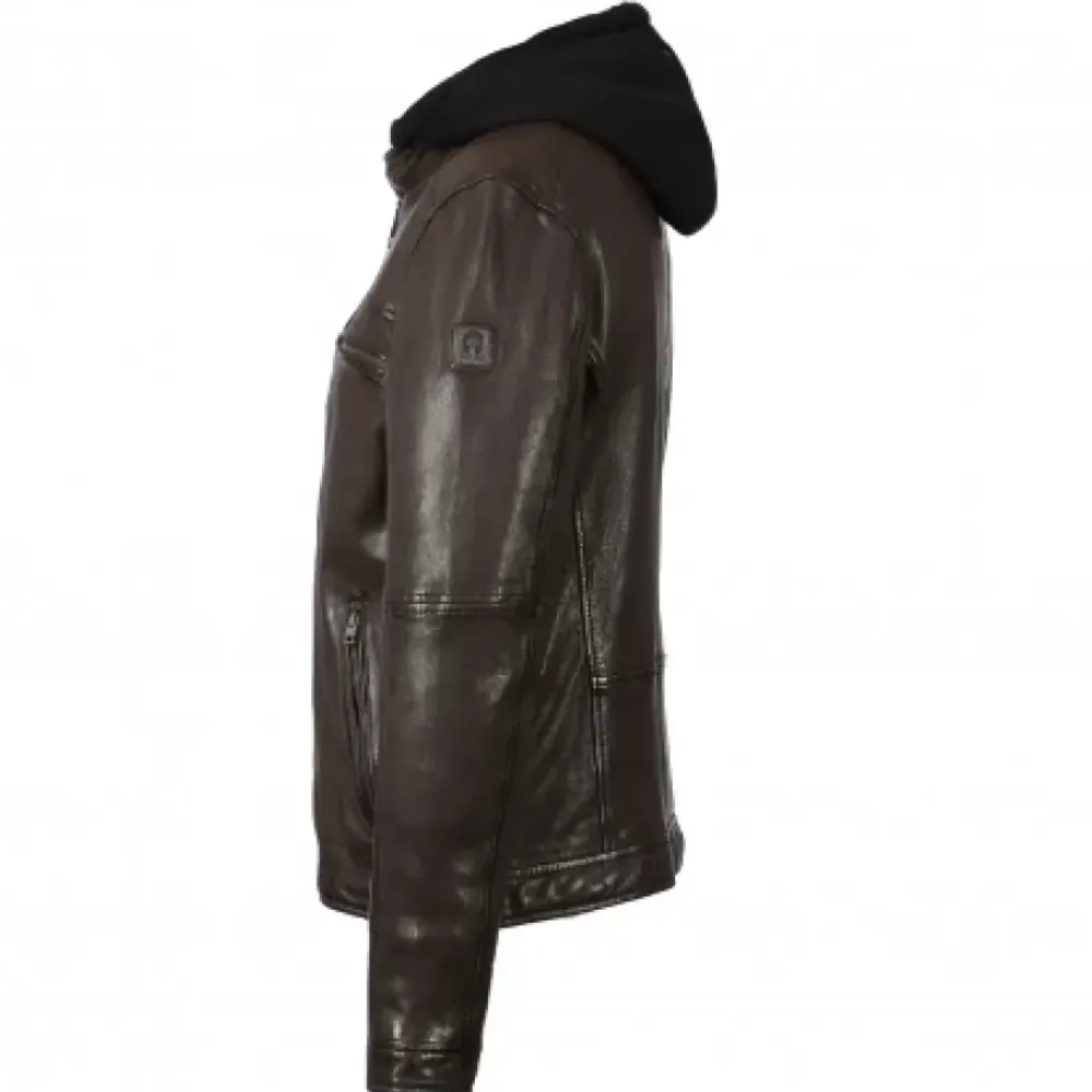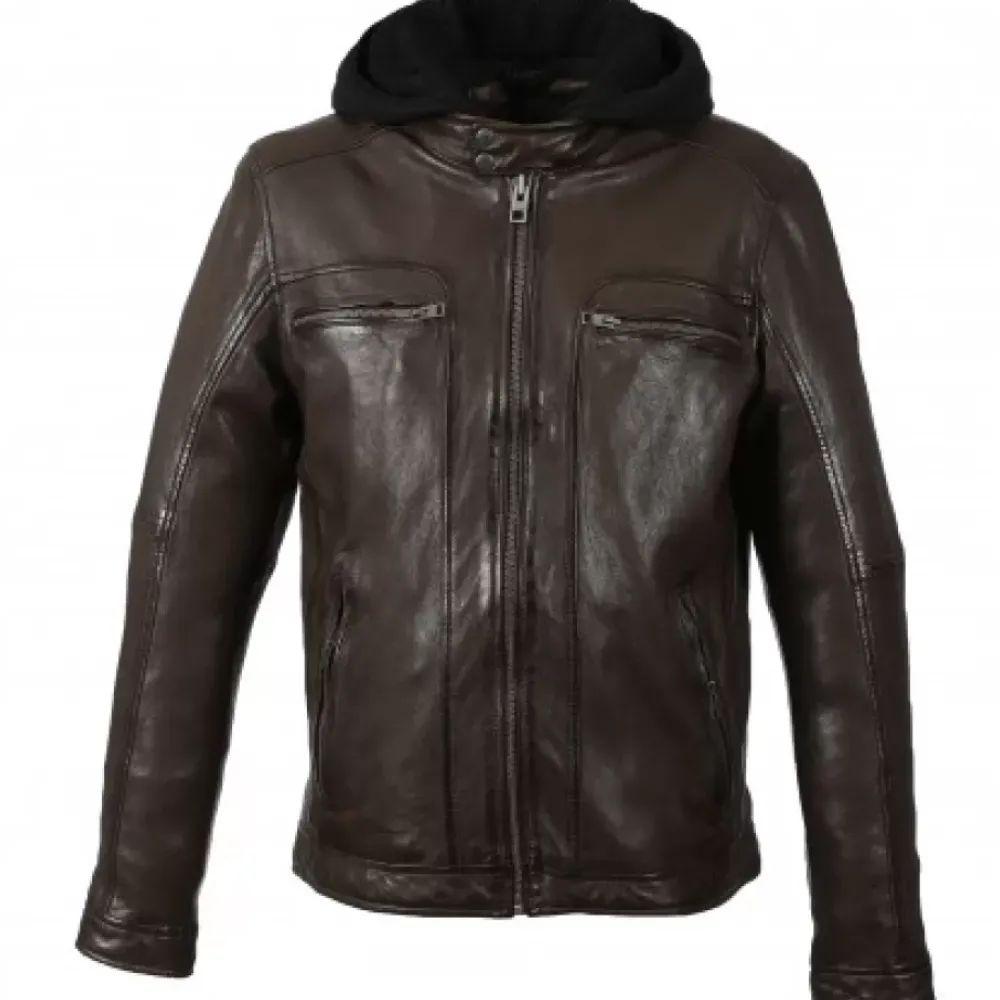 Be Casual In Style With This Genuine Sheep Leather Jacket! We Love The Washed Look Which Gives This Jacket An Authentic Touch. Its Faux Shearling Hood And Fleece Zipped Facing Are Prefect For Cold Days. We Love Its Straight Cut Structured With Topstitchings And Especially Its Pressed Buttons Mandarin Collar. This Jacket Features Four Outside Zipped Pockets And Two Inside Pockets Which Make It Very Handy. You Will Appreciate Its Breathable Fabric Lining. This Jacket Should Be At The Top Of Your Hitlist This Season!