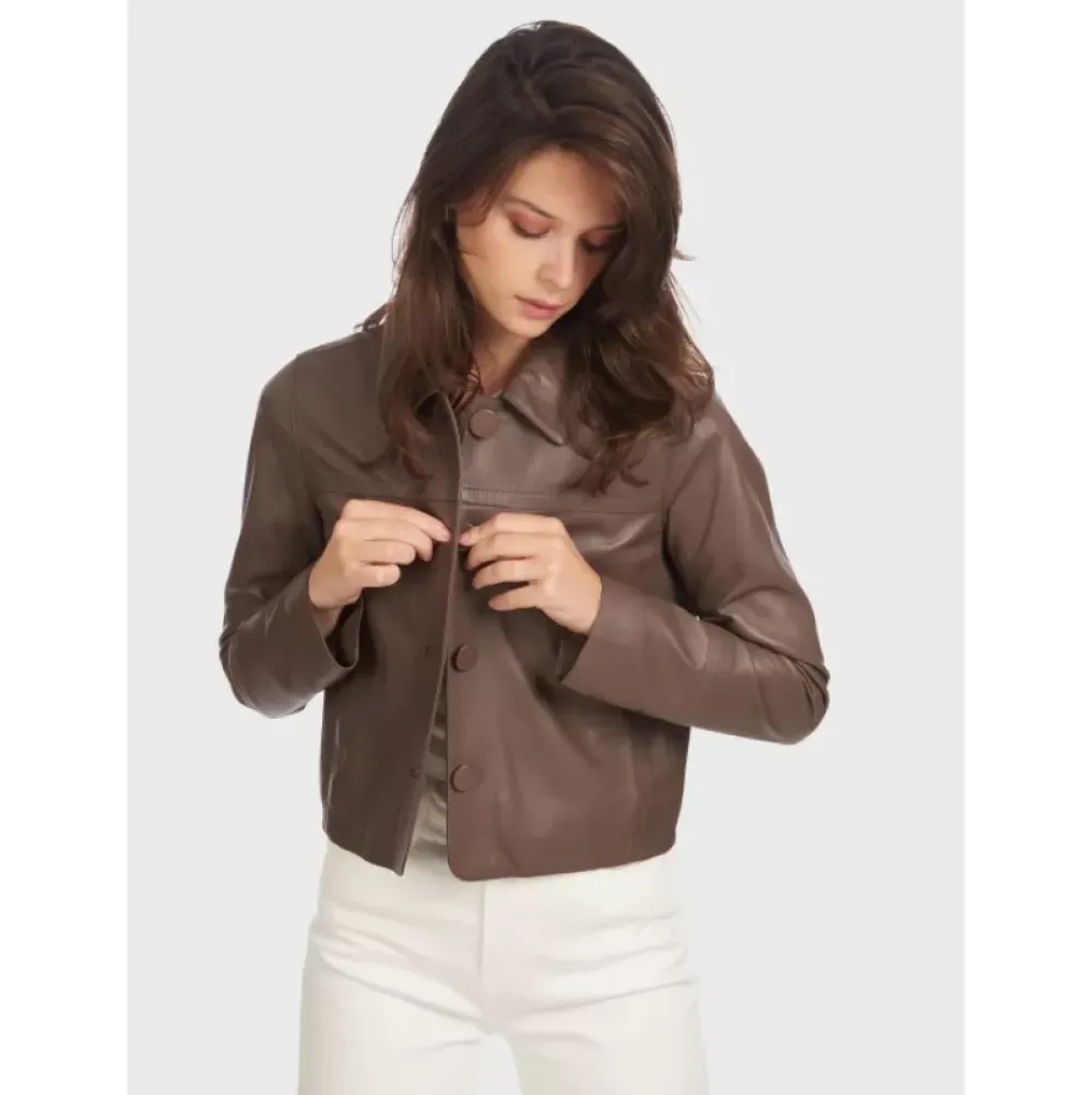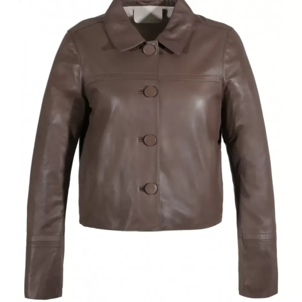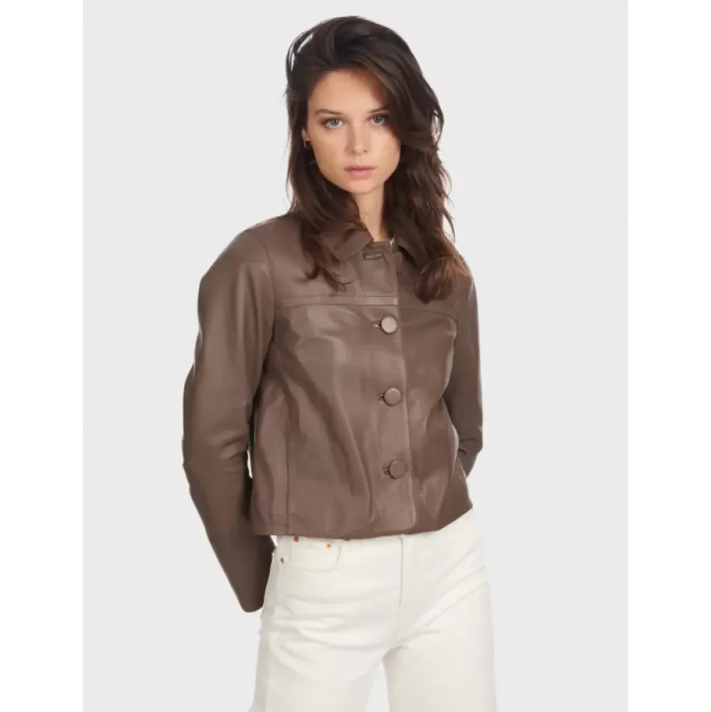 Jackets*OAKWOOD Grace Smoke – Genuine Leather Short Jacket With Buttons