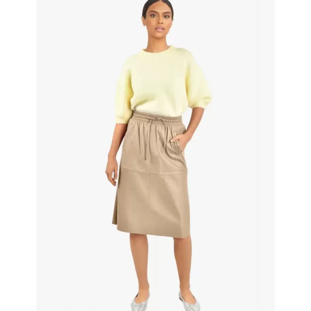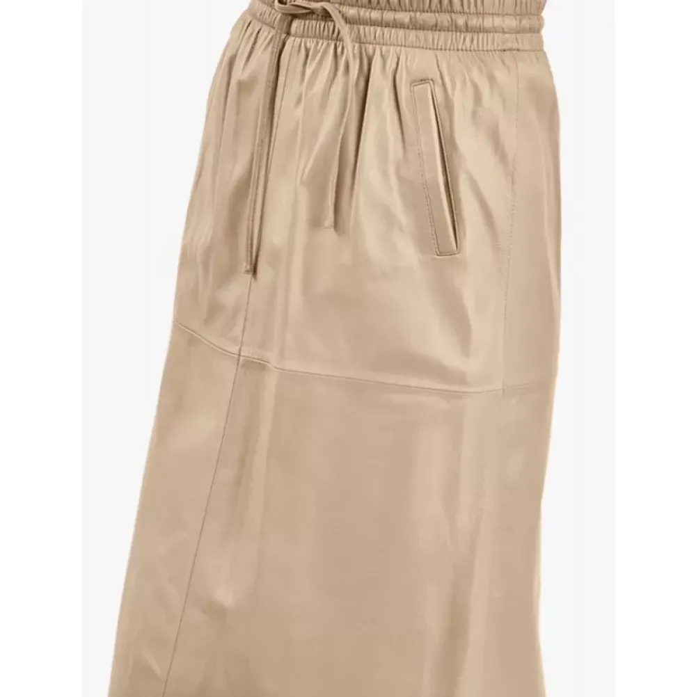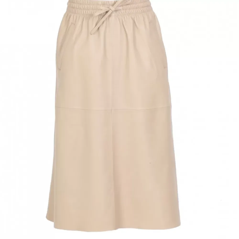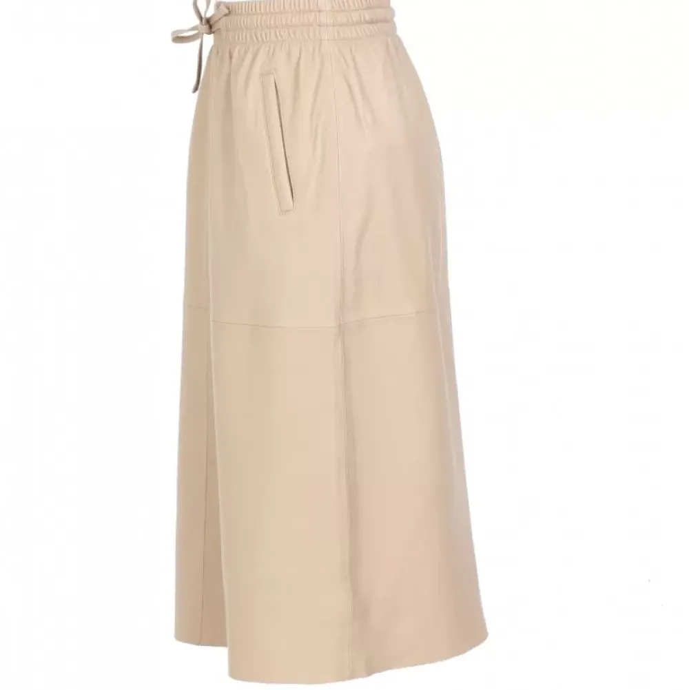 The Trend Is For Midi Skirts This Season, So Will You Let Yourself Be Carried Away By This Straight Skirt Made In Soft And Smooth Genuine Sheep Leather? Straight Cut, High And Elastic Waist With Drawstring, Side Pockets, Without Lining, Raw Edge Cut.