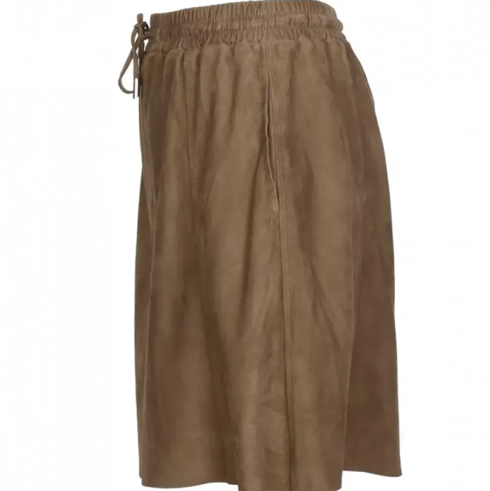 Our New Accomplice For Winter And Summer Has Finally Arrived! This Short Skirt In Genuine Goat Suede Leather Will Adapt Itself To All Your Outfits! Straight Cut, Elastic Waist With Drawstring, Slanted Front Pockets, Unlined, Raw Cut Edge.
