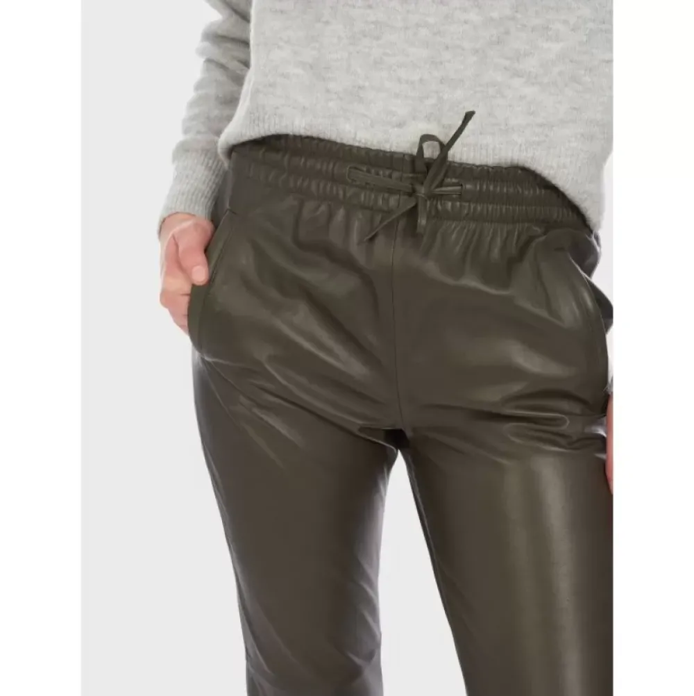 Trousers*OAKWOOD Gift Dark Khaki – Genuine Leather Jogpants