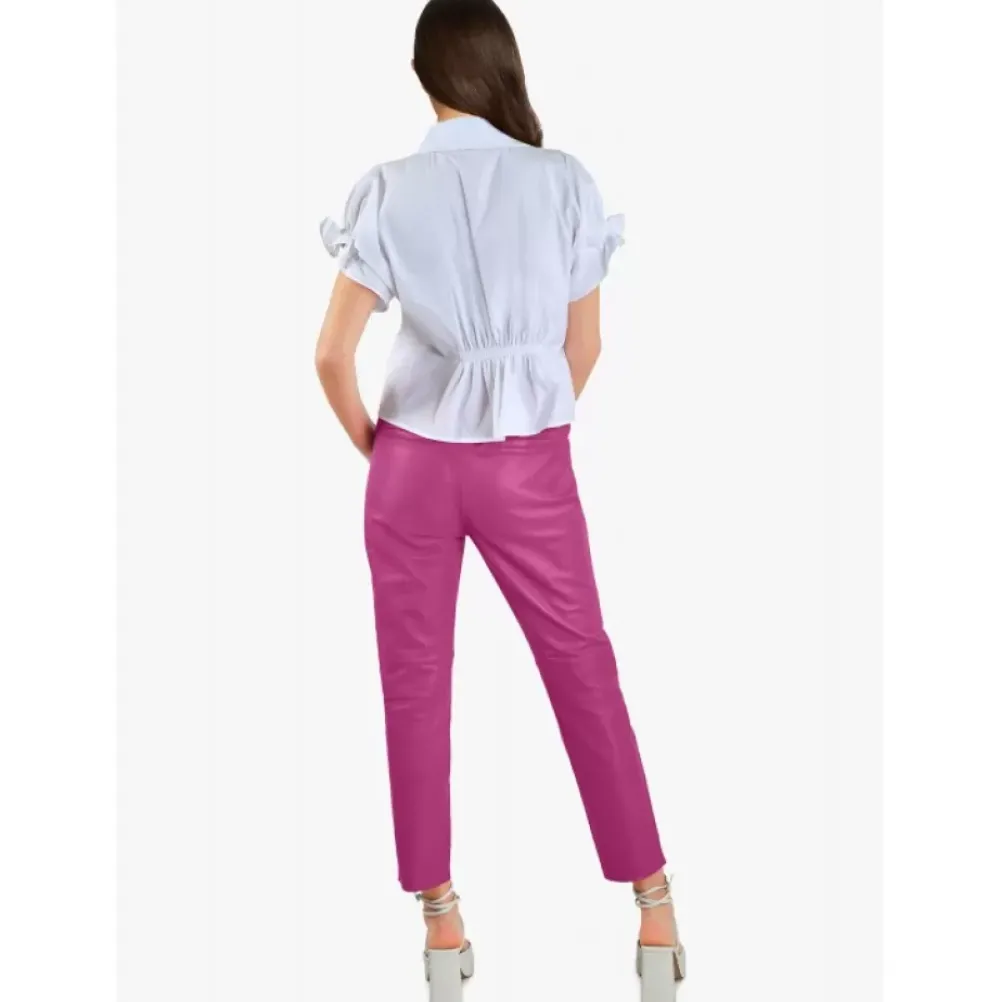 Part Of The Very Current Athleisure Trend, These Genuine Sheep Leather Joggers Are The Asset To Go Out For Urban And Trendy Looks! Soft And Fine Genuine Leather, Comfort Fit, 7/8 Lenght With Raw Cut Edge, Elastic Waist With Drawstring, Side Pockets At The Front, Decorative Pockets At The Back. Without Lining.