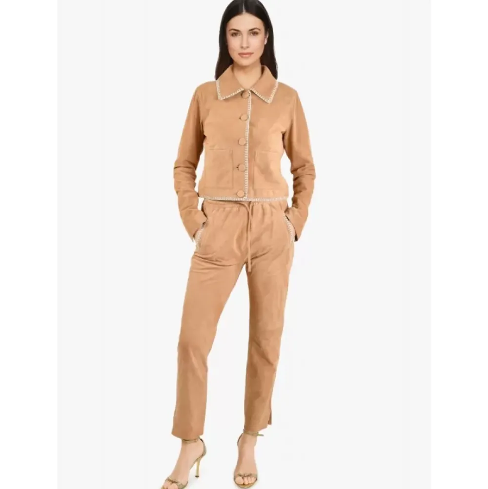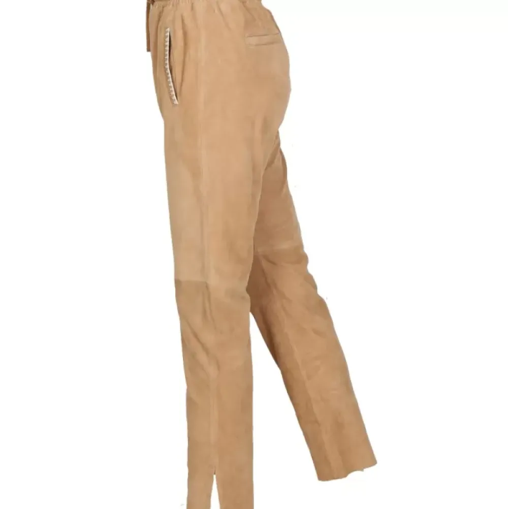 Trousers*OAKWOOD Mouna Beige – Genuine Suede Leather Jogpants