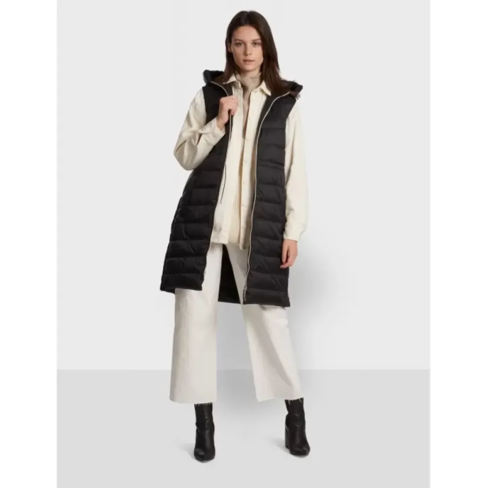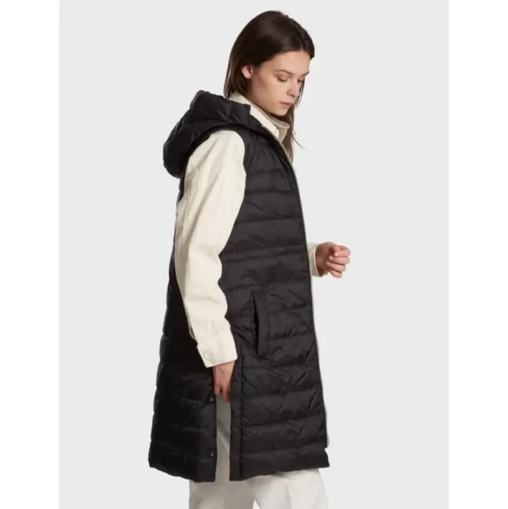 You Like Styles That Aren’T Like Any Others? Then You’Ll Love The Long And Sleeveless Down Jacket, Closed With A Two-Way Zipper For More Comfort And Provided Of Two Side Pockets. Its Inside Drawstring Will Allow To Underline Your Waist And Its Comfort Fences On The Sides Will Give You Liberty Of Movement. Its Hood Is At The Same Time A Stylish Element And Reveal Its Practicality Against The Cold When You’Ll Wear It Under A Jacket Or A Coat. Inside Or Outside, Alone Or On/Under An Other Item, This Sleeveless Down Jacket Will Be New Warm Asset!