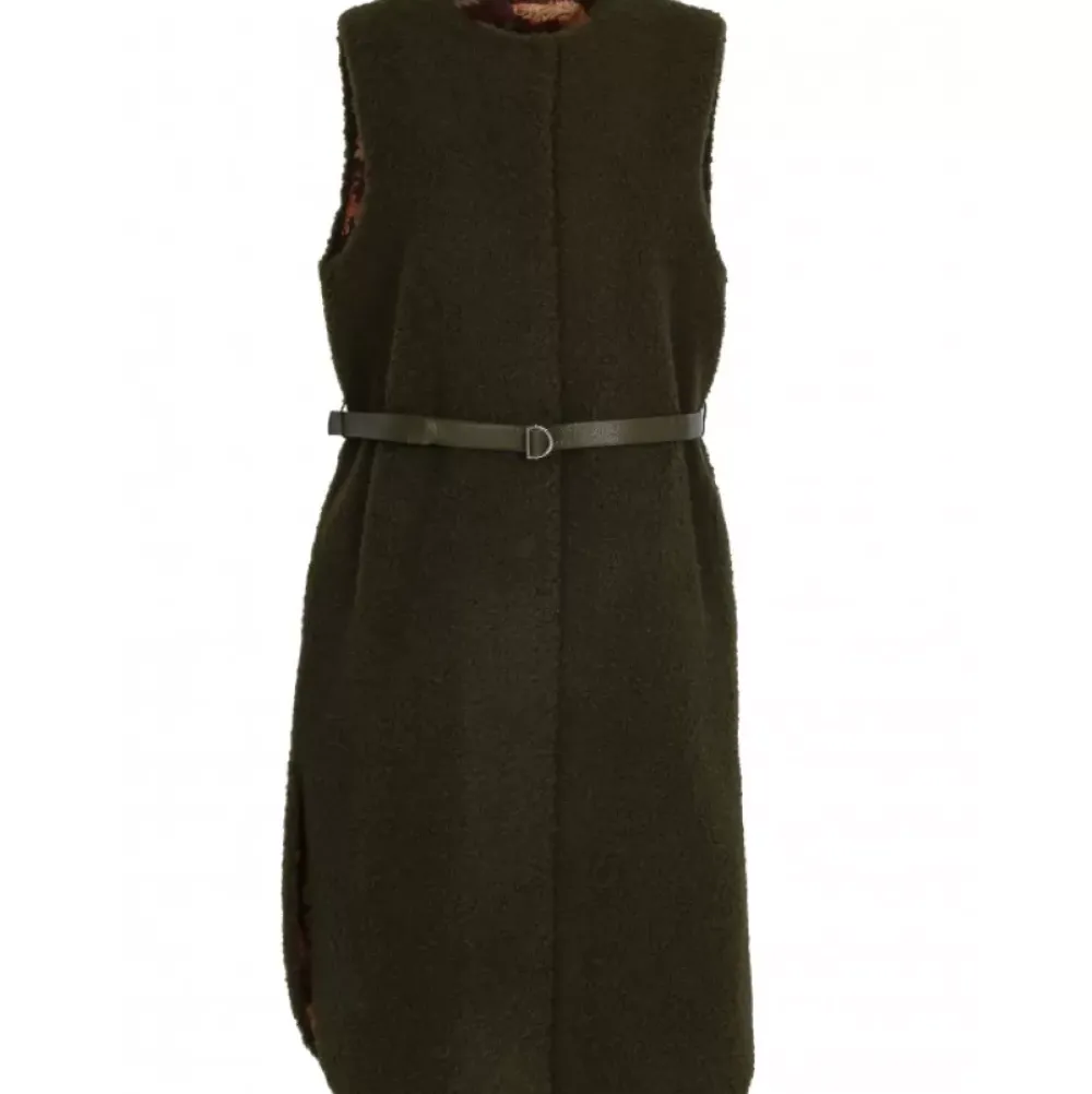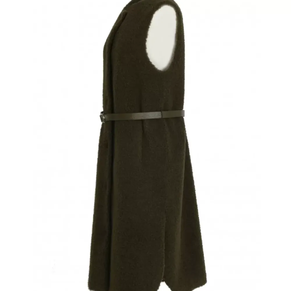This Sleeveless Coat Collects Retro Elements And It’S Beautiful! Its Curly Fake Fur, Its Round Collar, Its Belt: We Love It! Regular Fit, Central Closing With Press Buttons, Removable Belt, Slanted Pockets, Inside Zipped Pockets, Polyester Lining.