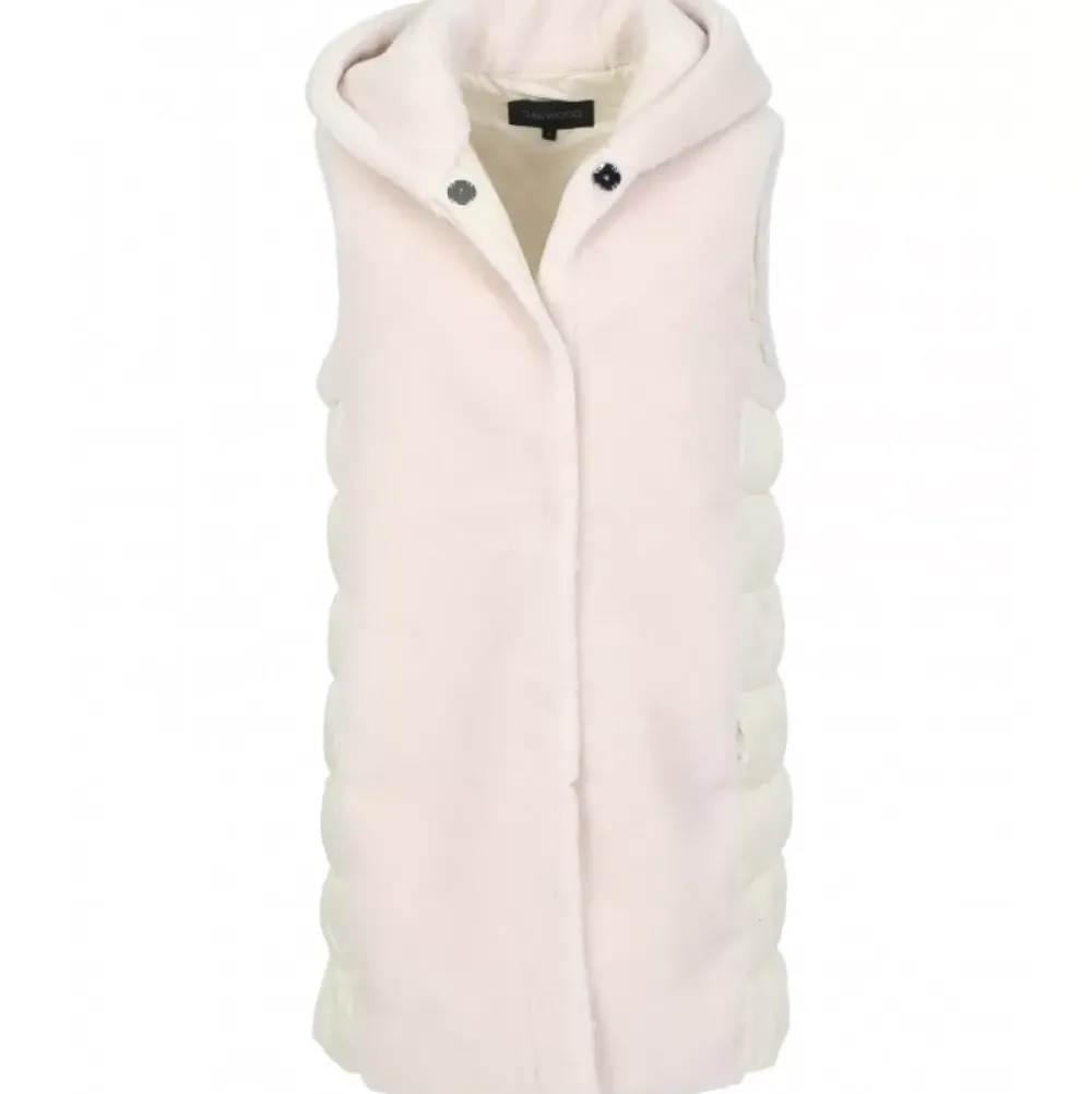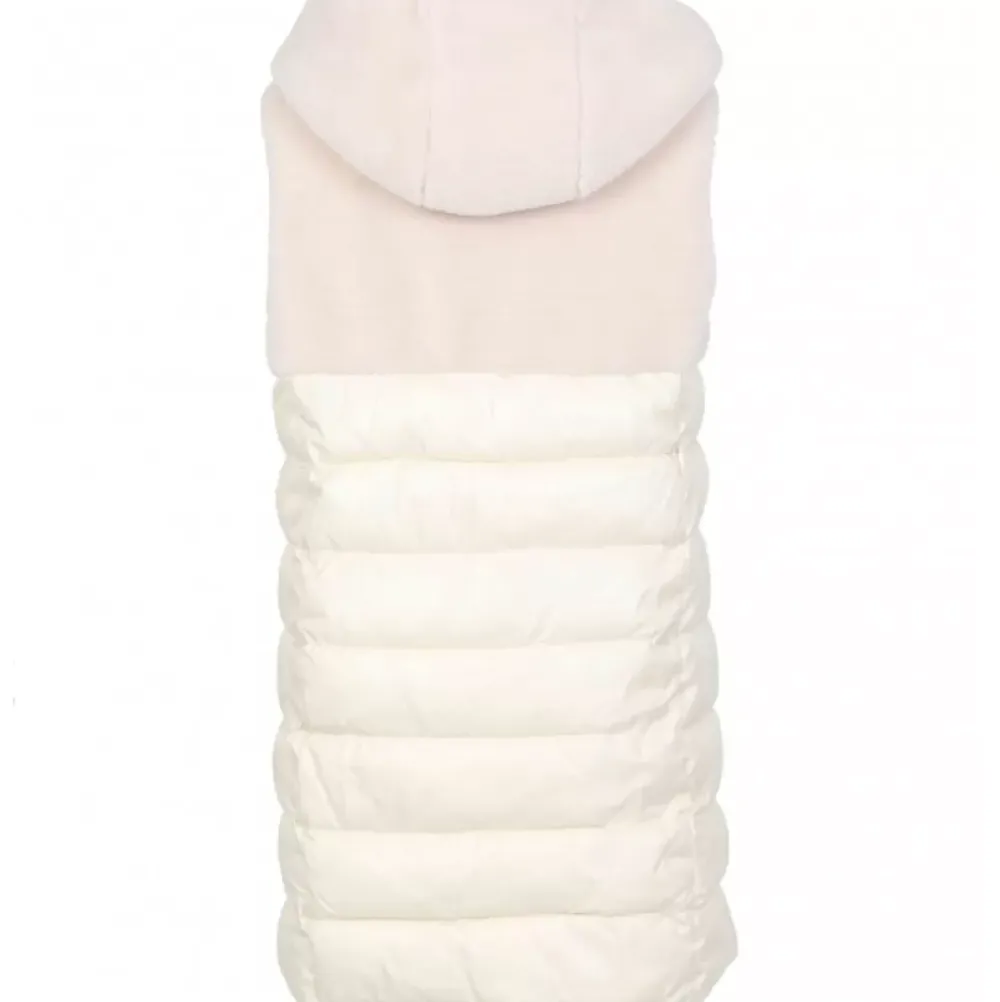 This Long Bi-Material Gilet Increases Its Power Of Seduction With Its Original Style. He Loves Layering Games And Offers The Cocooning Touch You Need! Fake Fur 100% Wool / Padded Nylon, Regular Fit, Central Closing With Press Buttons, Fixed Hood, Slanted Pockets, Nylon Lining.